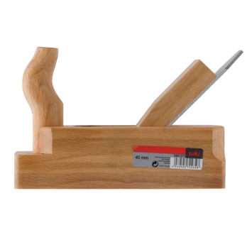 Deze blokschaaf van rood beukenhout is 39 mm breed en heeft een zuiver verlijmde zool voor een vlak resultaat. De schaafbeitel is gemaakt van gehard staal met een hoog koolstofgehalte. Aldus wordt een hardheidsgraad van ten minste 60HRC bereikt. De schaaf kan traploos worden versteld met een houten wig.