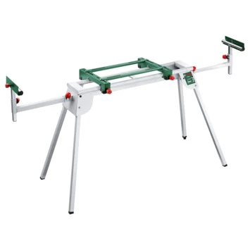 De PTA 2400 Afkortzaagtafel van Bosch is een mobiel onderstel waarmee u uw afkortzaag extra stevigheid geeft, waardoor u lange tijd achter elkaar comfortabel kunt werken. Het onderstel is geschikt voor de Bosch kap- en verstekzaag PCM en Bosch tafelboormachine PBD40 en heeft een in hoogte verstelbare voet. Zodoende kunt u ergonomisch en stabiel werken op prettige hoogte. Dankzij de robuuste zijverlengingen kunt u makkelijk panelen zagen. Deze afkortzaagtafel van Bosch kan daarmee worden verlengd van 1.22m naar maar liefst 2.44m. De werktafel is 82cm hoog.