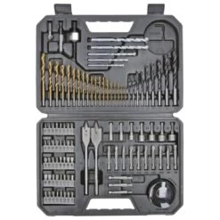 19x Metaalboor, 5x Steenboor, 9x Houtboor, 40x Schroefbit, 13x SchroefbitĀ (lang), 7x Dopbit, 1x Inbus, 1x Bithouder, 1x Countersink, 2x speedboorĀ & 1x Gatzaag-adapter en 4x Gatzaag