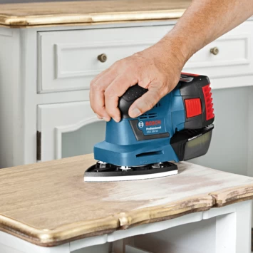 De Bosch Professional accu vlakschuurmachine GSS 18V-10 is een compacte accu schuurmachine die je kan bedienen met één hand. Door het compacte ontwerp kan je in elke hoek kom. Het Bosch microfilter-systeem zorgt ervoor dat de stof efficiënt afgezuigt wordt. De Bosch Professional accu vlakschuurmachine GSS 18V-10 is onderdeel van het Bosch Professional 18V accuplatform en wordt geleverd exclusief accu.