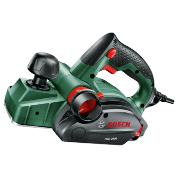De PHO 2000 schaafmachine van Bosch doet zijn werk efficiënt en nauwkeurig. De krachtige en sterke 680-watt-motor schaaft snel en gemakkelijk tot 2mm spaandiepte. De schaafmachine heeft een gecombineerde geleidings- en spaandiepte-instelknop voor de hoogste precisie en een veilige geleiding van het gereedschap. Op deze manier slaagt u er moeiteloos in om absoluut gladde oppervlakken en exact afgeschuinde hoeken te verkrijgen. Zelfs bij zware klussen is de spaanafname gelijkmatig. De spaanafvoerblazer voorkomt een opstopping van spanen. Dankzij de softgrip en de optimale positie van de handgreep, die geschikt is voor zowel links- als rechtshandigen, is de schaafmachine comfortabel in gebruik. Kortom: de elektrische schaafmachine PHO 2000 van Bosch is perfect geschikt om gladde en zuiver bewerkte houten oppervlakken te creëren.