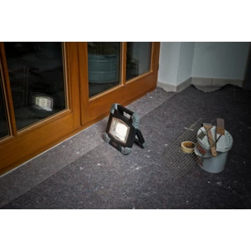 - LED-lamp met rubberen randbeveiliging voor de beste stabiliteit en robuuste kunststof behuizing is ideaal voor langdurig gebruik op bouwplaatsen met een verlichtingsduur tot 30 h