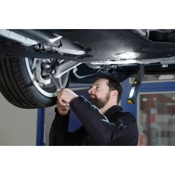 Multifunctionele Brennenstuhl accu LED looplamp 6 + 1. extreem krachtig, veelzijdig , robuust en heeft een uitstekend lichtrendement. 6 uiterst heldere SMD LED’s voorop 300 lumen met gebruiksduur tot 3 uur bij volle accu. 1 extra schakelstand voor een aparte led-licht bovenop 100 lumen. De behuizing heeft een volledige rubberen coating en een ingebouwde magneet in de voet. De voet is zwenkbaar tot 200° om de lamp in de juiste positie te richten. Door de twee sterke magneten op de achterzijde en twee 360° draaibare haken is de lamp eindeloos en multifunctioneel in te zetten voor vrijwel alle doeleinden. De ingebouwde lithium-ion accu 3,7 V / 2,2 Ah met laadindicator is binnen 4 uur opgeladen. De lamp heeft een aan/uit-schakelaar die de verschillende lichtfunctie bediend. De lamp wordt geleverd inclusief USB-laadkabel. De werktemperatuur van 6500 kelvin en is met name functioneel bij elke werkzaamheid.