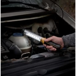 Een multifunctionele krachtige accu hand- werklamp voor elke klus. Door zijn beschermingsklasse IP54 is hij zowel voor binnen als voor buiten te gebruiken en kan hij tegen een stootje. De ingebouwde accu gaat tot wel 24 uur mee, door de verschillende schakelstanden: 100%, 40% en 10%. Zijn handvat is voorzien van een rubbere coating zodat hij niet uit uw handen schiet of snel wegrolt als u hem even neerlegd. Bovenop de lamp is een bewegelijke ingebouwde haak ingebouwd om de lamp ergens op te kunnen hangen. Met 12 krachtige LED’s zorgt hij voor meer dan voldoende zicht op donkere locaties. De handlamp wordt geleverd met een USB laadkabel en kan overal worden gebruikt als de batterij moet worden bijgeladen.