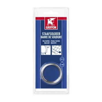 De Griffon staafsoldeer 6 mm tin/koper 100 gram is geschikt voor het zachtsolderen van koperen leidingen in combinatie met fittingen van messing of koper. De verhouding tin/koper is 97/3. De staafsoldeer is massief en heeft een diameter van 6 mm. De staafsoldeer is overal te gebruiken, in een droge, natte of vochtige ruimte. Het solderen is in alle posities mogelijk. Het gebruik van de Griffon staafsoldeer is universeel.