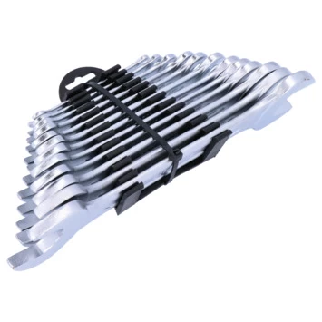 De 12-delige HANDSON-steeksleutelset bestaat uit 12 steeksleutels met maten van 6mm tot 32mm. De sleutelwijdtes van 6mm tot 32mm komen overeen met de metrische maten M4 tot M22. De steeksleutels uit deze set zijn gemaakt van hoogwaardig chroom-vanadiumstaal. Met dit stevige handgereedschap draait u moeren en bouten eenvoudig los of vast. De 12-delige set steeksleutels met 6mm- tot 32mm-steeksleutels is veelvuldig inzetbaar. De steeksleutels zijn namelijk extra plat waardoor deze ook bruikbaar zijn voor het schroeven van moeren en bouten op plaatsen waar weinig draairuimte is. Tijdens of na werkzaamheden bergt u de set met 12 platte steeksleutels goed en overzichtelijk op in de handige cassette.
