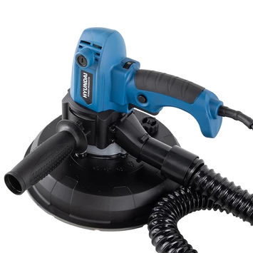 Een muur of plafond schilderen? Vergeet u dan niet het oppervlakte eerst goed te schuren, Een mooie egale ondergrond biedt immers het mooiste resultaat, Met deze Hyundai 1010W schuurmachine voor plafonds en muren egaliseert en schuurt u snel en eenvoudig, Een multifunctionele schuurmachine, geschikt voor het schuren van kleine én grote oppervlakten, Wanden, muren en plafonds van hout, kunststof of pleisterwerk zijn zo weer mooi vlak, De cirkelvormige vlakke zool is voorzien van een flexibele laag met klittenband waardoor het schuurpapier eenvoudig is aan te brengen en weer te verwisselen, Met de ‘soft start’ functie begint de machine langzaam te schuren waardoor schokschade wordt vermeden, Vervolgens kunnen er 6 snelheden worden ingesteld en vergrendeld, En zelfs de afzuigkracht kan handmatig worden ingesteld, Indien de schuurschijf met een polijst schijf wordt verwisseld kan ook metaal met deze machine worden gepolijst, De machine is voorzien van een 2 meter lange flexibele afzuigslang en stofopvangzak, Stof, puin en ander materiaal wordt dus opgevangen in de stofzak waardoor een ruimte stofvrij en schoon blijft, Inhoud: – Hyundai 1010W muur- en plafondschuurmachine , – 6x vel schuurpapier; korrel 80, 100, 120, 150, 180, 240, – 2x slangadapters; 38 en 47 mm, – Stofzuigerslang 2 meter, – Stof-opvangzak, – Schouderriem, – Extra handgreep, – Set koolborstels, – S5 interne inbussleutel, – Hyundai handleiding, Unieke specificaties: – Krachtige Hyundai schuurmachine voor het egaliseren van muren en plafonds, – Geschikt voor grote en kleine oppervlakten van hout, pleisterwerk en kunststof, – Vermogen; 1010W, – Schuuroppervlakte; diamter van 225 mm, – Inclusief stof-opvangzak 20 liter, – Behuizing motor; alluminium, – Aantal snelheden (standen); 6, – Onbelast toerental; 1500-3000 min-1, – Netspanning; 230V, – Netfrequentie; 50 Hz, – Snoerlengte; 4 meter, – Lengte flexibele slang; 2 meter, – Gewicht; 2500 gram, – Geleverd met diverse Hyundai accessoires, – 2 jaar Hyundai garantie.