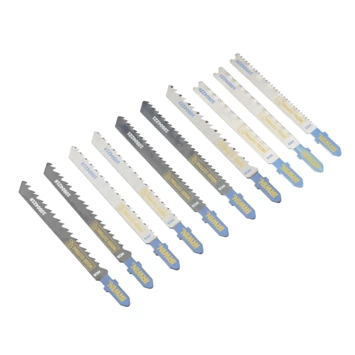 IRWIN decoupeerzaagset nr. 10505817 is een 10-delige set met een mix van hout/- en metaalzagen. Inhoud: 2x houtzaag 100mm 8 TPI / 2x houtzaag 100mm 6 TPI / 2x houtzaag 100mm 10 TPI / 1x houtzaag grof 100mm 6 TPI / 2x metaalzaag 92mm progressief 17-23TPI / 1x metaalzaag 92 mm progressief 11-13 TPI. In een overzichtelijke opbergcassette. De decoupeerzaagbladen hebben een T-aansluiting en passen op recente generatie decoupeerzaagmachines die tegenwoordig allemaal een universele aansluiting hebben.