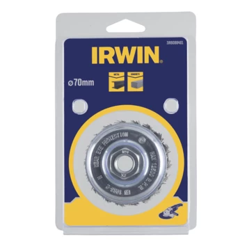 IRWIN komstaaldraadband IW8088401 is een komvormige staalborstel die geschikt is voor bijna alle gangbare haakse slijpers. De komstaaldraadband heeft een diameter van 70mm.