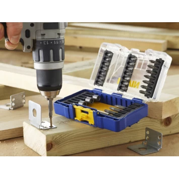 IRWIN bitset IW6062508 is een 30-delige bitset bestaande uit de meest gangbare bits en een bithouder. Overzichtelijk verpakt in een Tough Case, dus kan tegen een stootje. Inhoud: PH1, 5xPH2, PH3, PZ1, 5xPZ2, PZ3, T20, T25, T30, T40, SL6-8, SL8-10, SL10-12, dopsleutel: 6, 8,10, 12, dubbelzijdig: PH2/PH2, PZ2/PZ1, 2xPZ2/PZ2 en 1 magnetische bithouder.