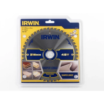 IRWIN zaagblad nr. 1897396 is met een diameter van 216mm en een asgat van 30mm geschikt voor de meeste kleinere afkortzagen. Medium vertanding (48T) voor algemeen gebruik. Multimateriaal zaagblad: voor het zagen van alle houtsoorten en harde materialen zoals laminaat, MDF, plastics en non-ferrometalen. Het blad heeft een dunne zaagsnede voor sneller zagen en een langere levensduur van de motor. De hardmetalen carbide punten van industriële kwaliteit blijven langer scherp en gaan langer mee.