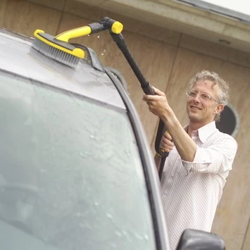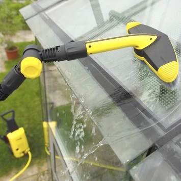 De Kärcher knikkoppeling is een 180 ° traploos verstelbare knikkoppeling voor het eenvoudig reinigen van moeilijk bereikbare plaatsen, zoals bijvoorbeeld de wielkas van auto en/of caravan. De knikkoppeling wordt tussen het hogedrukpistool en het toebehoren gezet.