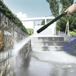 De Kärcher vario power spuitlans VP 180 is ideaal voor het reinigen van kleinere oppervlakten rondom het huis en tuin, zoals muren, paden, schuttingen en voertuigen. De VP 180 vario power lans is traploos verstelbaar, door aan de spuitlans te draaien, van lagedrukstraal met reinigingsmiddel tot hogedrukstraal. Deze vario power lans is geschikt voor de Kärcher hogedrukreinigers klasse K7.