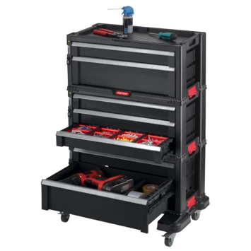 Deze gereedschapstoren heeft 7 lades die volledig uitschuifbaar zijn en heeft stevige metalen kogelgelagerde geleiders. Zo weet je zeker dat je gereedschap goed is opgeborgen. De gereedschapskist heeft vier ondiepe lades met uitneembare vakken voor het organiseren van kleine benodigdheden en twee diepe lades met een uitneembare afscheider. Deze toren is mobiel en veelzijdig en beschikt over zwenkwielen voor eenvoudig transport naar je werkplek. Kortom, de Gereedschapstoren Keter 7 laden is de ideale opberger voor zowel professionals als enthousiaste doe-het-zelvers.