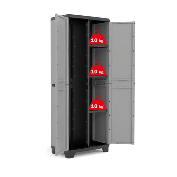 De opbergkast Stilo hoog multi-purpose is een ideale opberger voor diverse spullen. De hoge opbergkast is voorzien van twee deuren en is vormgegeven in een strak design. De kast past dan ook in iedere ruimte, of het nu in huis, de schuur, de garage of op de werkplaats is. De kast zet u gemakkelijk in elkaar en de legborden zijn in hoogte verstelbaar. Zo kunt u de kast naar eigen wens indelen en gebruiken voor diverse spullen, zoals schoonmaakmiddelen, verfblikken, gereedschap, speelgoed, enz. Bovendien is de kast compact verpakt, zodat u deze eenvoudig kunt vervoeren. Kortom, met deze kast creëert u gemakkelijk extra opbergruimte.