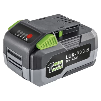 Ga voor een langere looptijd met de LUX 20V 4.0Ah accu en lader, toepasbaar op alle items uit het LUX 20V accuplatform
