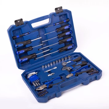 58-delige handgereedschapset met de meeste voorkomende gereedschappen die je nodig hebt om de klus te klaren.