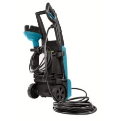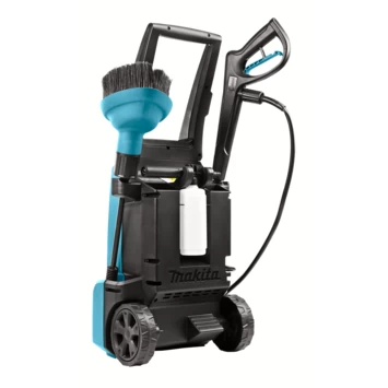De Makita hogedrukreiniger wordt geleverd met diverse accessoires, waaronder een vuilfrees. Met de vuilfrees kan er hardnekkig vuil worden verwijderd. De hogedrukreiniger heeft onder het model wielen waarmee je deze makkelijk kan verplaatsen.