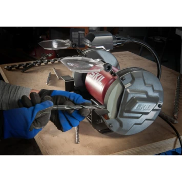 Slechte verlichting in je werkplaats? Geen probleem! Het flexibele LED-licht zorgt voor een optimaal zicht op je werkstuk. Ten slotte is de slijpmachine voorzien van stabiele, verstelbare machinesteunen en een stofdichte aan/uit-schakelaar. De SKIL 1355 AA wordt geleverd met 2 slijpschijven van 150 mm (korrel 36 en 60), oogbeschermkappen en verstelbare machinesteunen.