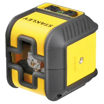 De Stanley Cubix kruislijnlaser groen 16 meter is zeer eenvoudig te bedienen. Volledig zelfnivellerend (tot ± 4°) met een nivelleringstijd van minder dan 5 sec. Met manuele modus om hoeklijnen uit te zetten. De heldere groene laserlijn heeft een bereik van 16 meter met een nauwkeurigheid van 6mm@10m. Flexibele 360° plaatsing mogelijk dankzij meegeleverde Quicklink-steun. Een ideaal hulpmiddel voor het uitzetten van lijnen bij bijvoorbeeld het betegelen van vloeren en muren, bij het ophangen van schilderijen of het plaatsen van een trapleuning. Voorzien van een robuuste behuizing met rubberen bescherming en vergrendelbaar pendulum voor probleemloos transport. Standaard schroefdraad voor statief 1/4″. IP50 bescherming tegen stof. Laser klasse 2. De Stanley Cubix kruislijnlaser groen 16 meter wordt geleverd inclusief: 2 x AA batterijen, opbergzakje en Quicklink-steun.