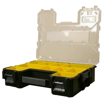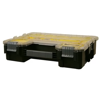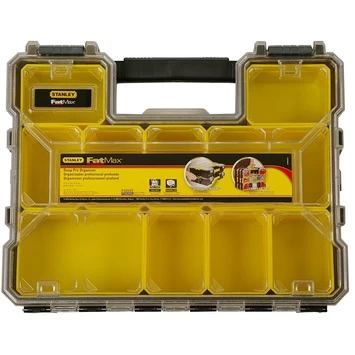 De Stanley Fatmax assortimentsdoos (diep) is een diepe, zwart met gele opbergkist. De professionele organizer is uitgerust met 10 uitneembare bakjes. Dankzij de organizer bergt u uw materialen en gereedschap snel en overzichtelijk op. Denk bijvoorbeeld aan schroeven, pluggen, spijkers, moeren, bouten en duvels. Tevens worden uw spullen beschermd van vuil en regenwater. Bovendien kunt u dankzij het transparante, onbreekbare deksel direct de inhoud van de opberger zien. U kunt de organizer stapelen en vergrendelen voor transport en dankzij het stevige handvat is de Stanley Fatmax organizer handig te vervoeren. Wilt u graag uw spullen netjes opbergen? Kies dan voor de Stanley Fatmax organizer.