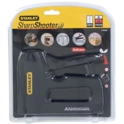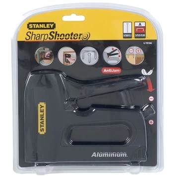 De Stanley handtacker type 6-TR150L is een lichte handtacker met een robuuste aluminium behuizing. De handtacker is geschikt is voor nagels type J (12, 15mm) en nieten type A (6, 8, 10, 12, 14mm). De Stanley tacker is zeer eenvoudig en snel te laden en is geschikt voor veelvuldig gebruik door ergonomische handgreep, licht gewicht en hoge belastbaarheid.