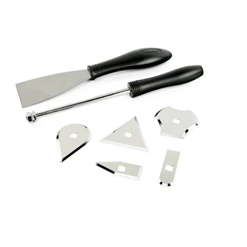 Verf afschrapen gaat heel eenvoudig met deze Wagner Furno verfafschraper set. Deze set is speciaal ontwikkeld voor het makkelijker en sneller afschrapen van verf tijdens het verf afbranden. Ieder schraperblad is handig voor een andere ondergrond en is makkelijk met een moer op het handvat te schroeven. Doordat er maar een handvat voor de verschillende bladen nodig is, heb je weinig opbergruimte nodig voor deze set. Kortom: een fijne set met accessoires voor je werkzaamheden met het Wagner Furno heteluchtpistool.