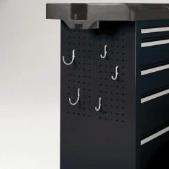 Een grote gereedschapswagen die je makkelijk verplaatst, dat is de Waterloo gereedschapswagen zwart 3 laden en werkblad. Deze wagen is voorzien van een volledig uittrekbare, kogelgelagerde ladegeleiders en zijn getest om dagelijks gebruik te doorstaan. De wagen biedt ruimte voor zowel klein als groot gereedschap en aan de zijkant kun je elektrisch gereedschap en een batterijoplader kwijt. Bovendien ligt er op de wagen een robuust MDF-werkblad om kleine werkzaamheden op de verrichten. Erg handig, want dit werkblad kun je eenvoudig verwijderen en ergens anders plaatsen. Het centrale vergrendelingssysteem zorgt voor een snelle sluiting. Dankzij de stevige kunststoffen handgrepen aan de zijkant van de wagen, is deze makkelijk voort te duwen. De stevige zwenkwielen van de wagen ondersteunen maar liefst 226kg aan laadvermogen. Kortom: een multifunctionele gereedschapswagen voor zowel de thuisklusser als de professional.